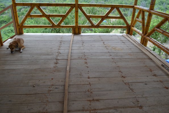 Viernes, 5/24/2019: Only in Ecuador! The wood in the balcony floor is cedar. But, "most" of the wood in the screened room is laurel. The laurel came first, but they obviously didn't buy enough, and finished out the room and balcony with the cedar. I choose to say this is "unique"!