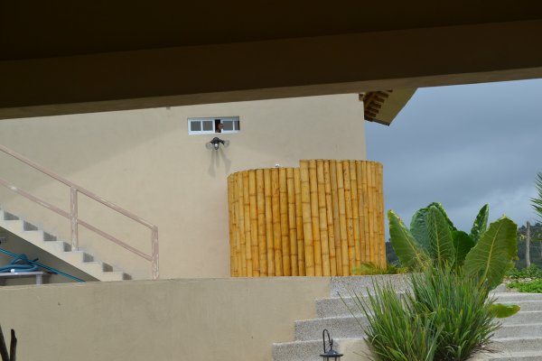 Jueves, 5/16/2019: Our beautiful bamboo retaining wall at the front gate has now had its finishing coat of lacquer/varnish - and I think it looks great!