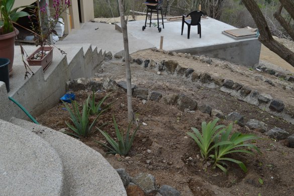 Tuesday, Jan 15: The walks around the palapa have been finished with "granito", and are gorgeous. The "carne de perro" (plant) is taking hold nicely along the dirt in front of the pool.