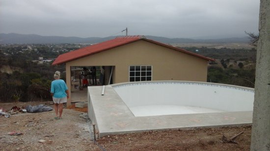 Friday, Nov 9: After spending the day in Manta yesterday, shopping for a little more furniture, etc., we return today to find more stairs completed, along with a small wall defining a planting area next to the pool.