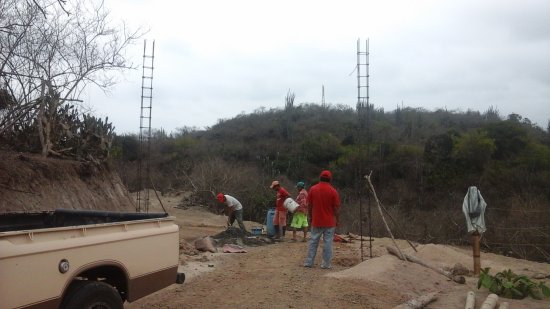 Wednesday, Nov 7: Work continues on the stairs negotiating our hill, finishing the top to the cistern with the lid to fill it. The chicos are working hard to get us into our new home!