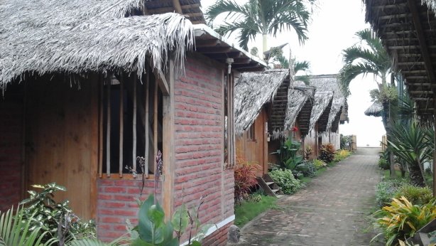 Recently completed, the malecon runs all along the oceanfront of the town of Puerto Lopez. It's a beautiful beach, lined with shops and restaurants on one side of the street, and beach huts serving food and all kinds of drinks on the beach side.